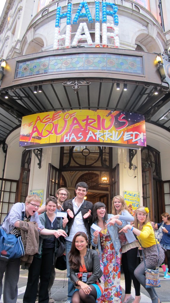 As an educational trip for its students, GSA provided tickets to West End shows, some of which were…Legally Blonde, Priscilla, Lion King and Hair. Since I’ve seen the rest (with the exception of Priscilla, and admittedly, I don’t know what the hell it’s about! Haha!), I opted to see Hair. A bunch of us from our class, and a lot of other students at GSA, braved the rush hour traffic and the mosh pit-like train populace and took the Underground towards Shaftesbury Avenue, where we were to see Hair.